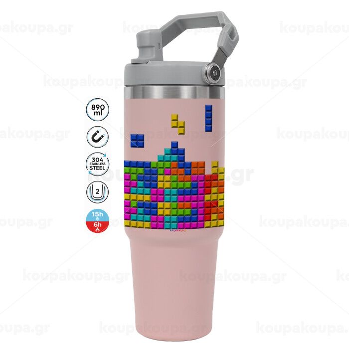 Tetris blocks, ΡΟΖ χρώματος Θερμός Ανοξείδωτο 890ml (30oz) με χερούλι
