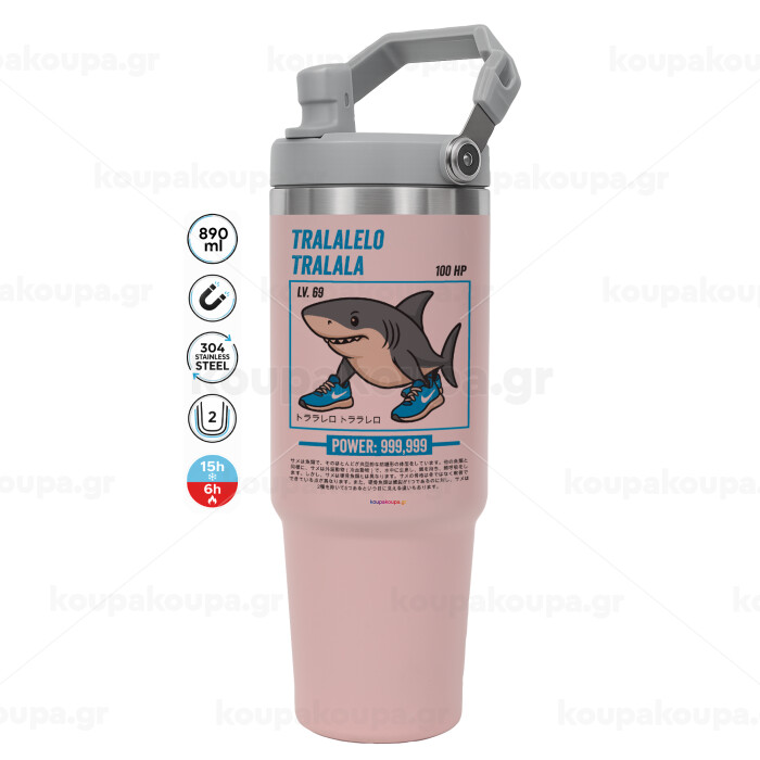 Tralalero Tralala, ΡΟΖ χρώματος Θερμός Ανοξείδωτο 890ml (30oz) με χερούλι