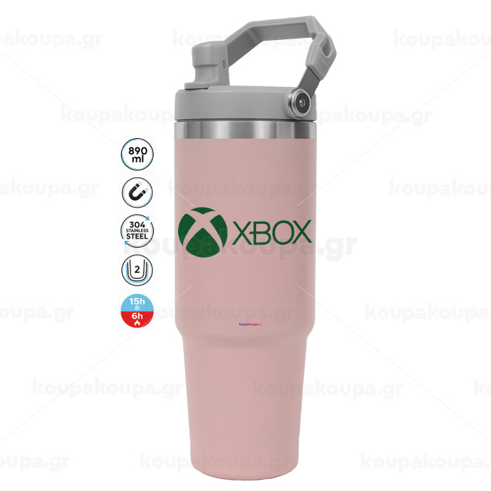 xbox, ΡΟΖ χρώματος Θερμός Ανοξείδωτο 890ml (30oz) με χερούλι