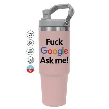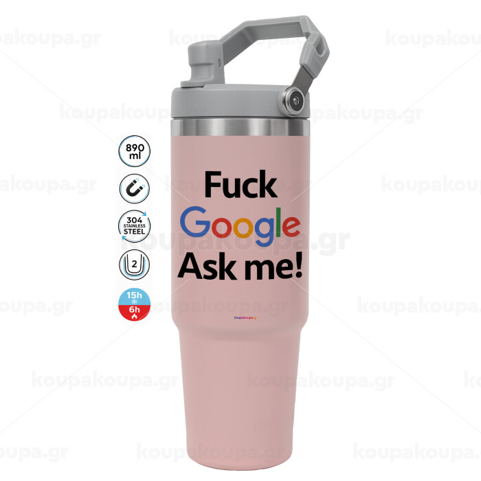 Fuck Google, Ask me!, ΡΟΖ χρώματος Θερμός Ανοξείδωτο 890ml (30oz) με χερούλι