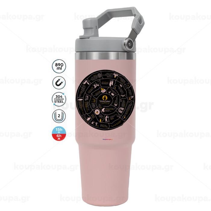 Προχίστορας, ΡΟΖ χρώματος Θερμός Ανοξείδωτο 890ml (30oz) με χερούλι
