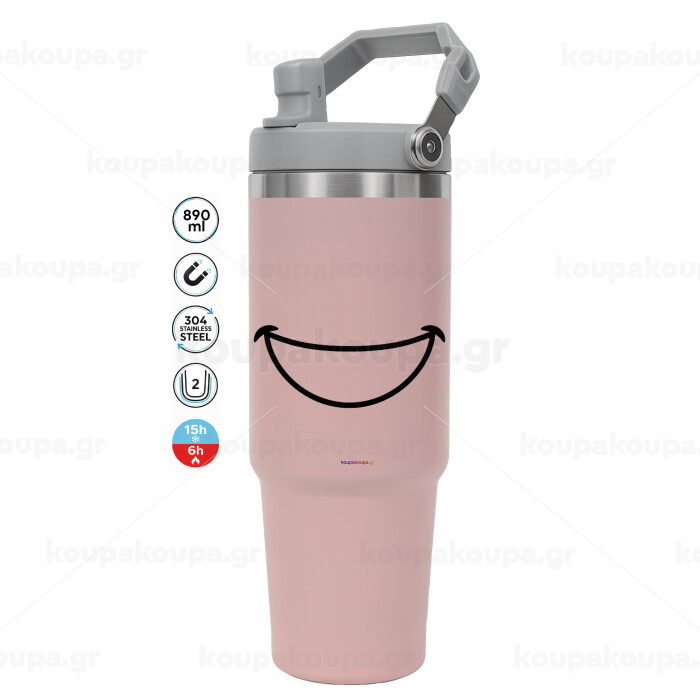 Χαμογέλα, ΡΟΖ χρώματος Θερμός Ανοξείδωτο 890ml (30oz) με χερούλι
