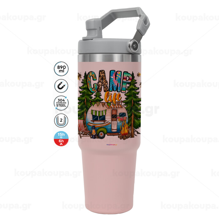 Camp Life, ΡΟΖ χρώματος Θερμός Ανοξείδωτο 890ml (30oz) με χερούλι