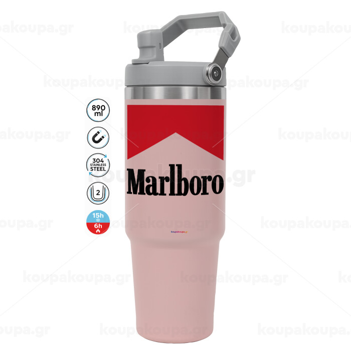 Marlboro, ΡΟΖ χρώματος Θερμός Ανοξείδωτο 890ml (30oz) με χερούλι