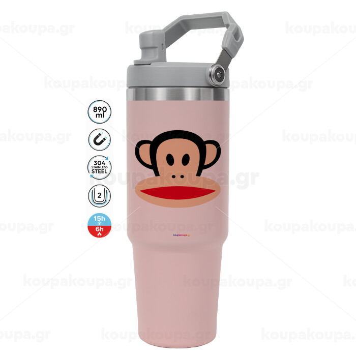 Monkey, ΡΟΖ χρώματος Θερμός Ανοξείδωτο 890ml (30oz) με χερούλι