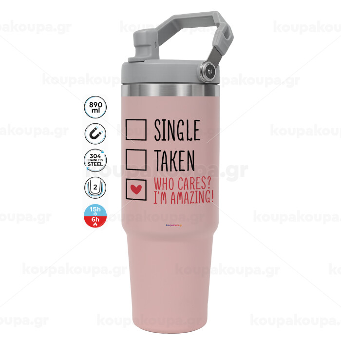 Single, Taken, Who cares i'm amazing, ΡΟΖ χρώματος Θερμός Ανοξείδωτο 890ml (30oz) με χερούλι