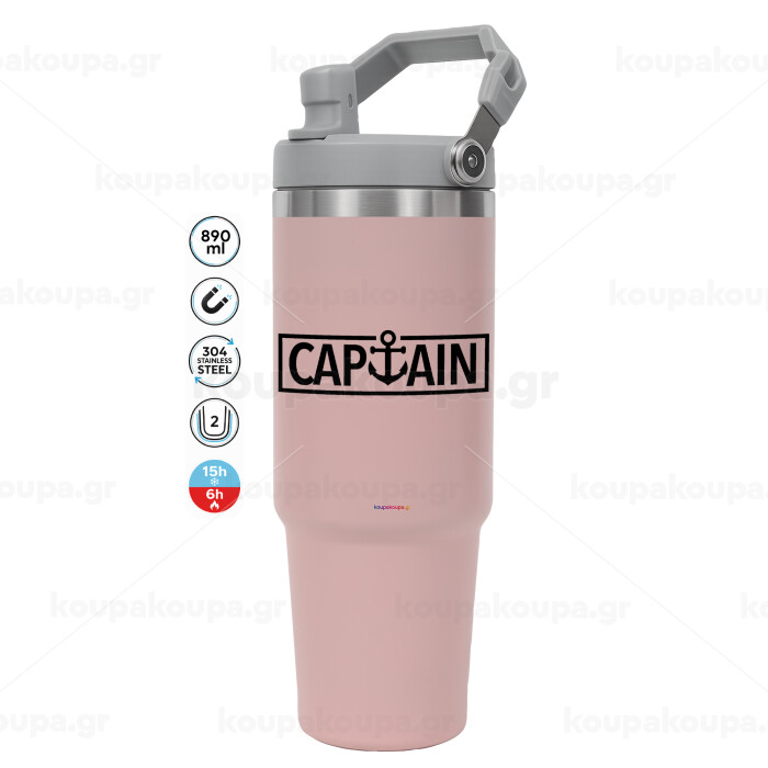 CAPTAIN, ΡΟΖ χρώματος Θερμός Ανοξείδωτο 890ml (30oz) με χερούλι