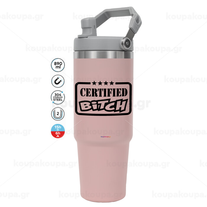 Certified Bitch, ΡΟΖ χρώματος Θερμός Ανοξείδωτο 890ml (30oz) με χερούλι