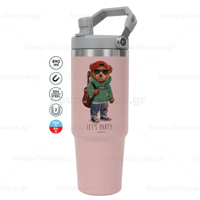 Let's Party Bear, ΡΟΖ χρώματος Θερμός Ανοξείδωτο 890ml (30oz) με χερούλι