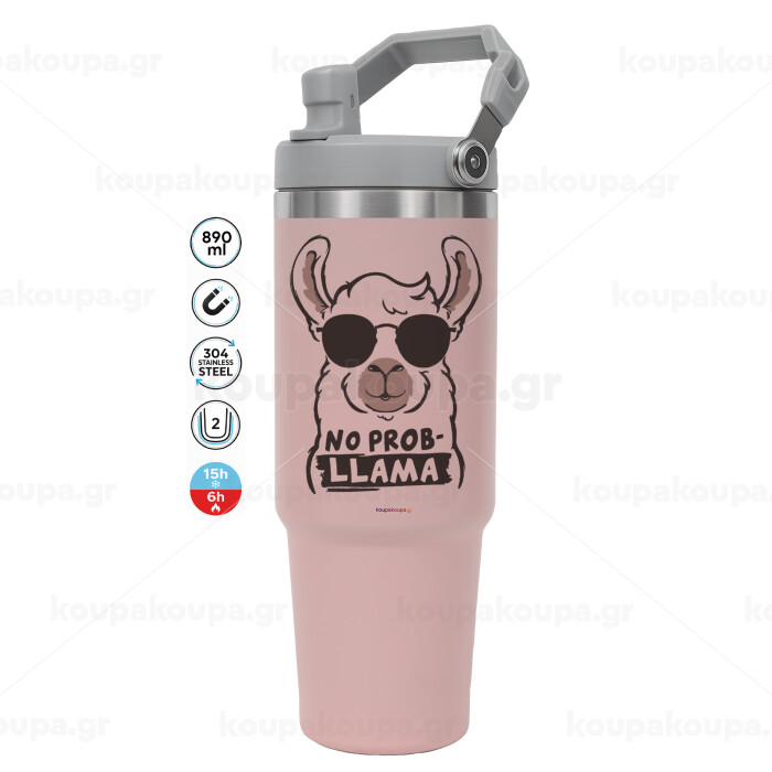No Prob Llama, ΡΟΖ χρώματος Θερμός Ανοξείδωτο 890ml (30oz) με χερούλι