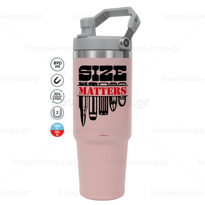 Size matters, ΡΟΖ χρώματος Θερμός Ανοξείδωτο 890ml (30oz) με χερούλι