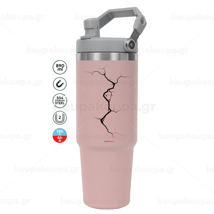 Cracked, ΡΟΖ χρώματος Θερμός Ανοξείδωτο 890ml (30oz) με χερούλι