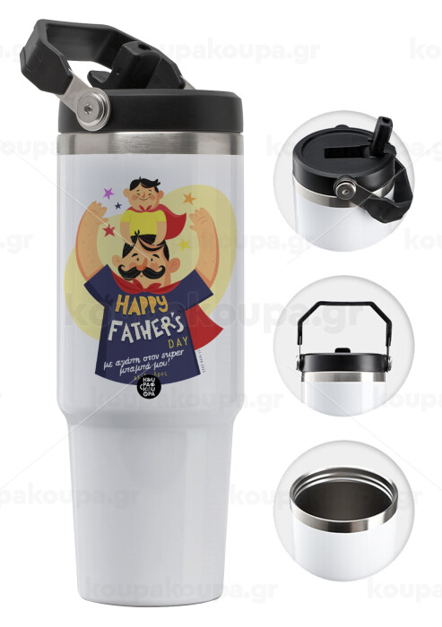 Happy Fathers Day με όνομα, Θερμός Ανοξείδωτο 30oz με χερούλι