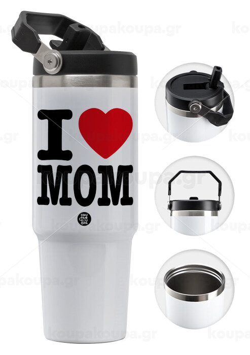 I LOVE MOM, Θερμός Ανοξείδωτο 30oz με χερούλι