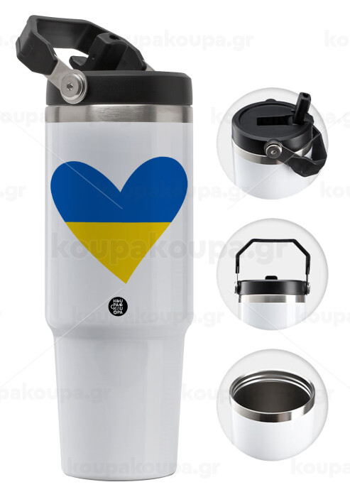UKRAINE heart, Θερμός Ανοξείδωτο 30oz με χερούλι