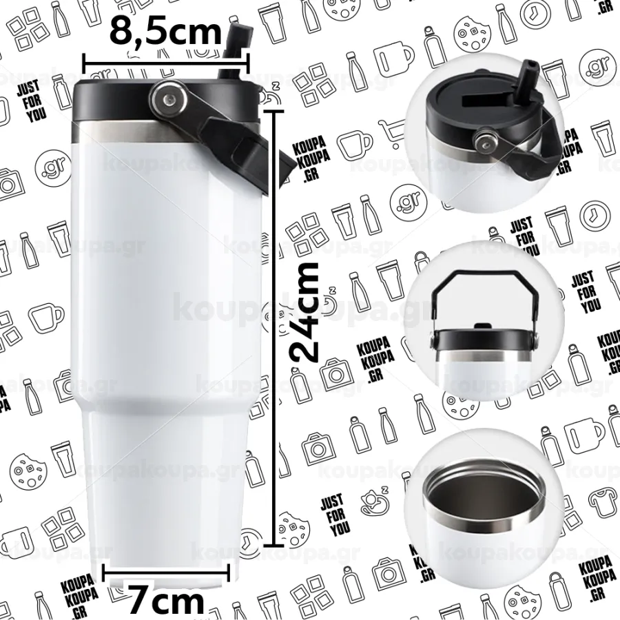 Ανακαλύψτε το Ανοξείδωτο Θερμός 30oz με Χερούλι, τον ιδανικό σύντροφο για κάθε στιγμή της ημέρας, στο σπίτι, στη δουλειά ή στη βόλτα. Κατασκευασμένο από 304 ανοξείδωτο ατσάλι εσωτερικά, ασφαλές για τρόφιμα, και 201 ανοξείδωτο ατσάλι εξωτερικά για μέγιστη αντοχή στη χρήση. Διατηρεί το ρόφημά σας ζεστό έως 12 ώρες και δροσερό έως 6 ώρες, ιδανικό για καφέ, τσάι, νερό ή αναψυκτικά. Μεγάλος όγκος για ενυδάτωση όλη την ημέρα χωρίς συχνές αναπληρώσεις. Σχεδίαση με ενσωματωμένο καλαμάκι και χειρολαβή για άνετη χρήση και εύκολη μεταφορά παντού. Χάρη στο μεγάλο άνοιγμα, καθαρίζεται εύκολα μετά από κάθε χρήση.