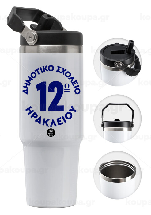Έμβλημα Σχολικό λευκή, Θερμός Ανοξείδωτο 30oz με χερούλι