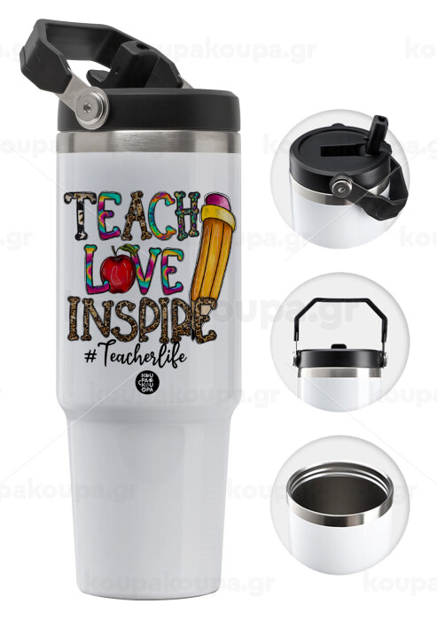 Teach, Love, Inspire, Θερμός Ανοξείδωτο 30oz με χερούλι