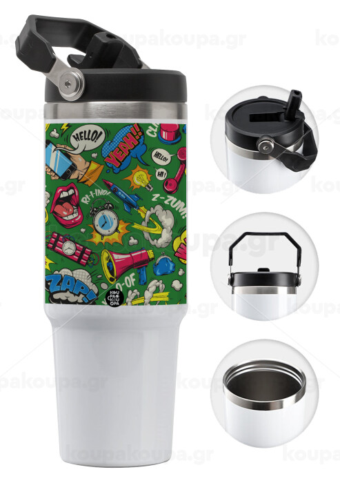 Pop art colorful seamless, Θερμός Ανοξείδωτο 30oz με χερούλι