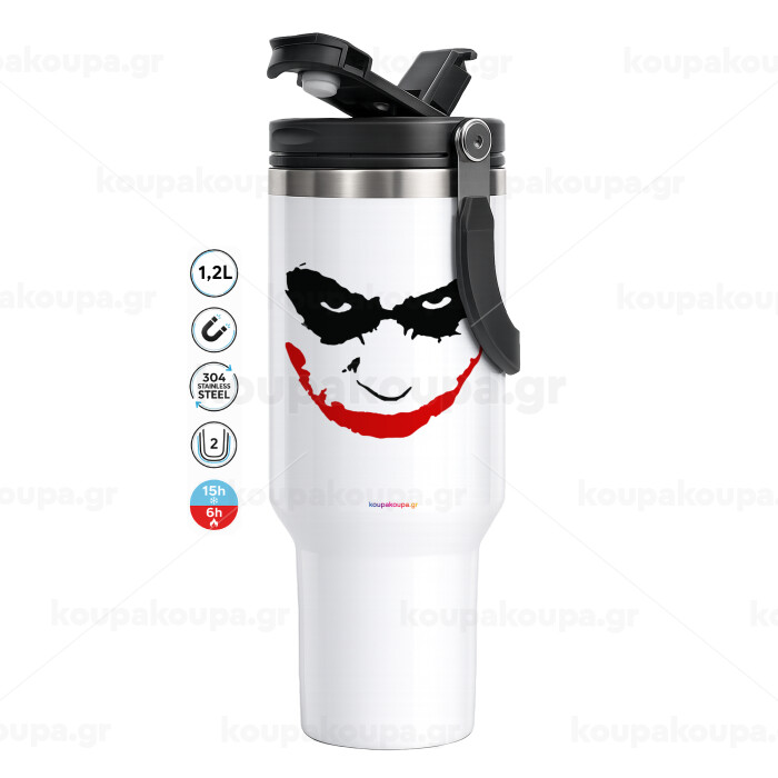 The joker smile, Mega Tumbler με καπάκι, διπλού τοιχώματος (θερμό) 1,2L