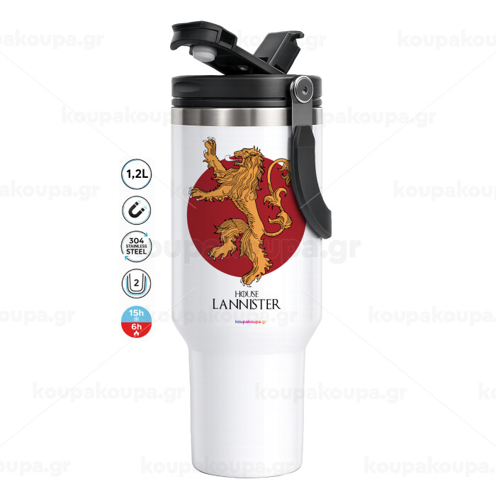House Lannister GOT, Mega Tumbler με καπάκι, διπλού τοιχώματος (θερμό) 1,2L