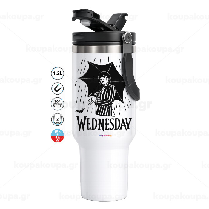 Wednesday Addams, Mega Tumbler με καπάκι, διπλού τοιχώματος (θερμό) 1,2L