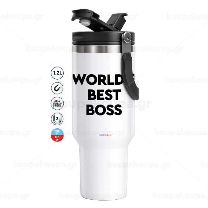 World's best boss, Mega Tumbler με καπάκι, διπλού τοιχώματος (θερμό) 1,2L