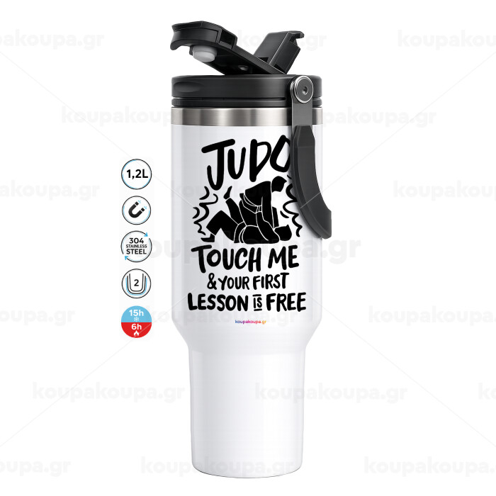Judo Touch Me And Your First Lesson Is Free, Mega Tumbler με καπάκι, διπλού τοιχώματος (θερμό) 1,2L