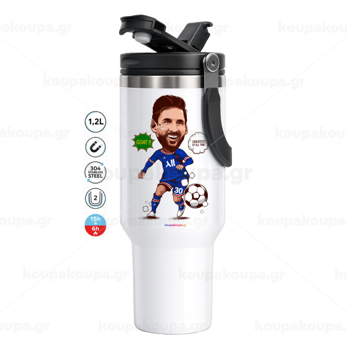 Lionel Messi drawing, Mega Tumbler με καπάκι, διπλού τοιχώματος (θερμό) 1,2L