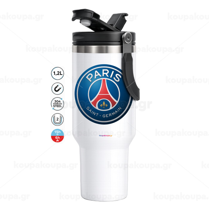 Paris Saint-Germain F.C., Mega Tumbler με καπάκι, διπλού τοιχώματος (θερμό) 1,2L