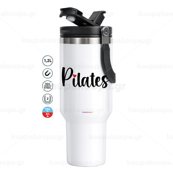 Pilates love, Mega Tumbler με καπάκι, διπλού τοιχώματος (θερμό) 1,2L