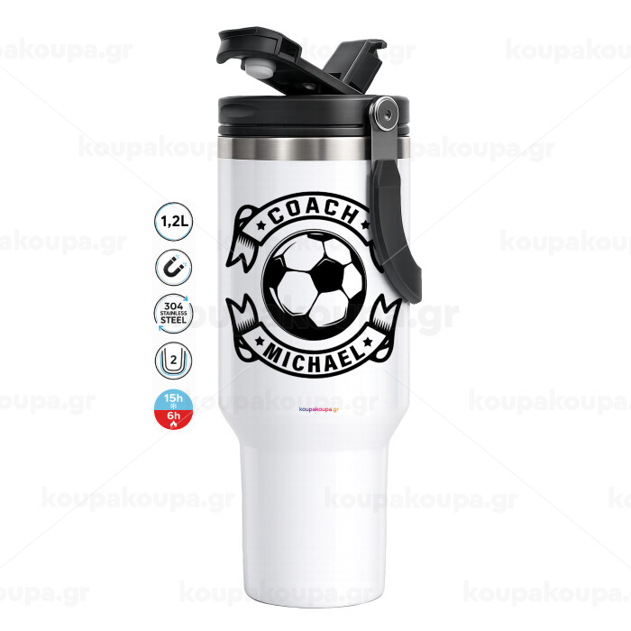 Soccer coach, Mega Tumbler με καπάκι, διπλού τοιχώματος (θερμό) 1,2L