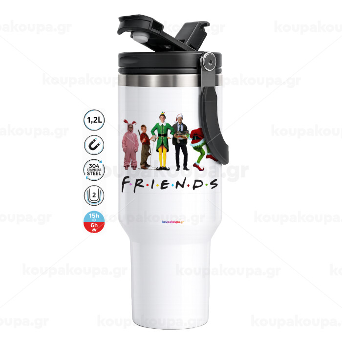 Christmas FRIENDS, Mega Tumbler με καπάκι, διπλού τοιχώματος (θερμό) 1,2L