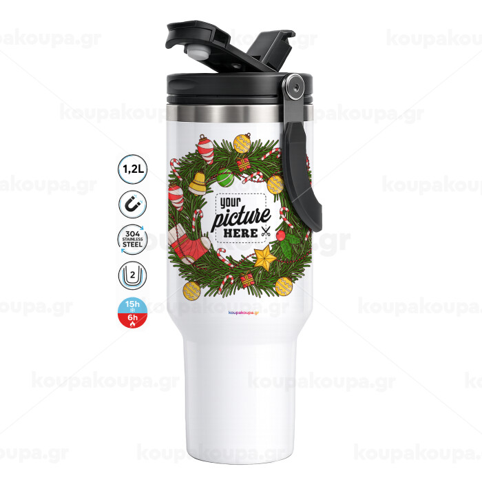 PHOTO Christmas twitch, Mega Tumbler με καπάκι, διπλού τοιχώματος (θερμό) 1,2L