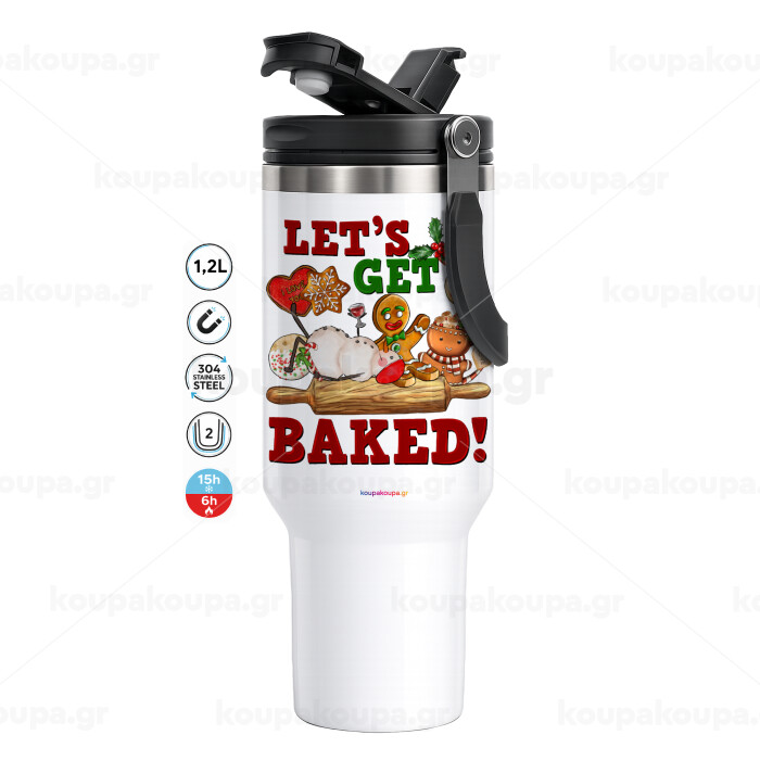 Let's get baked, Mega Tumbler με καπάκι, διπλού τοιχώματος (θερμό) 1,2L