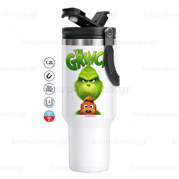 mr grinch, Mega Tumbler με καπάκι, διπλού τοιχώματος (θερμό) 1,2L