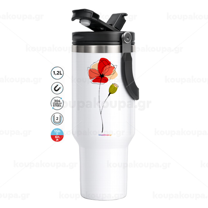 Red poppy flowers papaver, Mega Travel Mug / Κούπα Ταξιδίου, διπλού τοιχώματος (θερμό) 1,2L