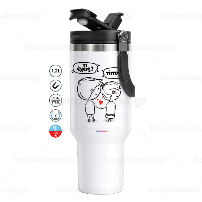 Τι έχεις? Τίποτα!, Mega Tumbler με καπάκι, διπλού τοιχώματος (θερμό) 1,2L