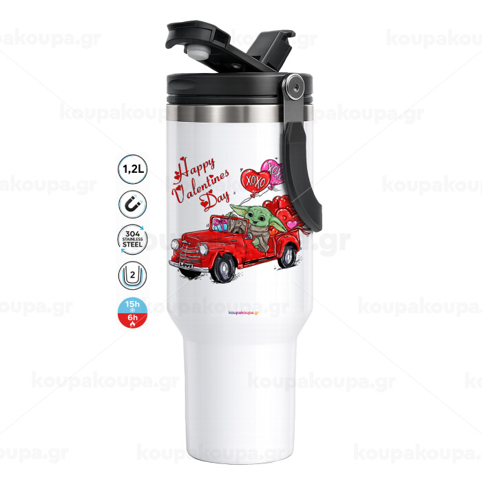 Yoda, happy valentines day (xoxo), Mega Tumbler με καπάκι, διπλού τοιχώματος (θερμό) 1,2L