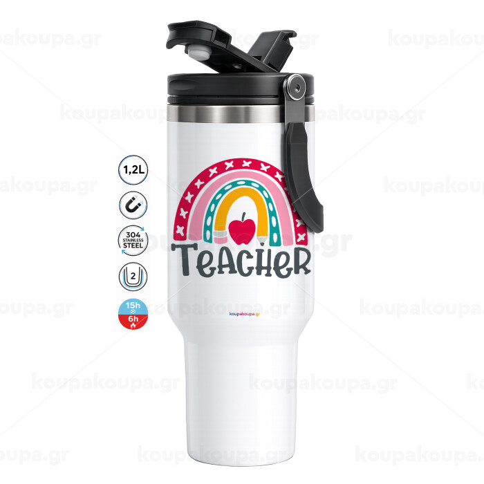 Rainbow teacher, Mega Tumbler με καπάκι, διπλού τοιχώματος (θερμό) 1,2L
