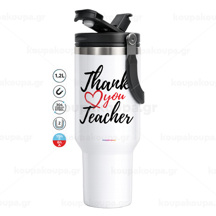 Thank you teacher, Mega Tumbler με καπάκι, διπλού τοιχώματος (θερμό) 1,2L