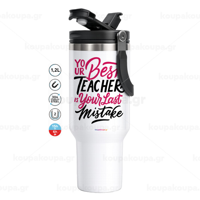 Typography quotes your best teacher is your last mistake, Mega Tumbler με καπάκι, διπλού τοιχώματος (θερμό) 1,2L