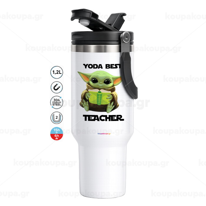 Yoda Best Teacher, Mega Tumbler με καπάκι, διπλού τοιχώματος (θερμό) 1,2L