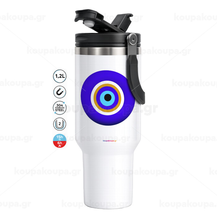 Το μάτι, Mega Tumbler με καπάκι, διπλού τοιχώματος (θερμό) 1,2L