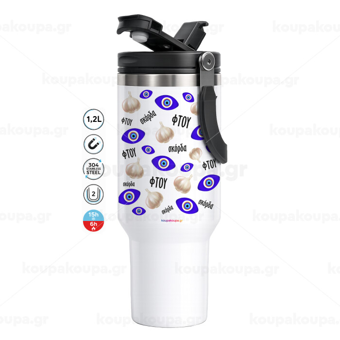 Φτου, φτου, σκόρδα!!!, Mega Tumbler με καπάκι, διπλού τοιχώματος (θερμό) 1,2L