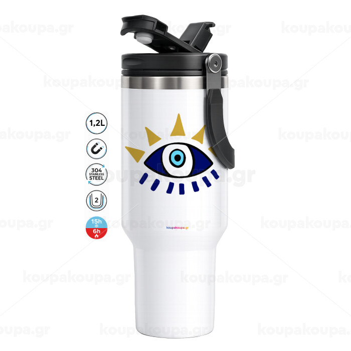 Το μάτι, Mega Tumbler με καπάκι, διπλού τοιχώματος (θερμό) 1,2L