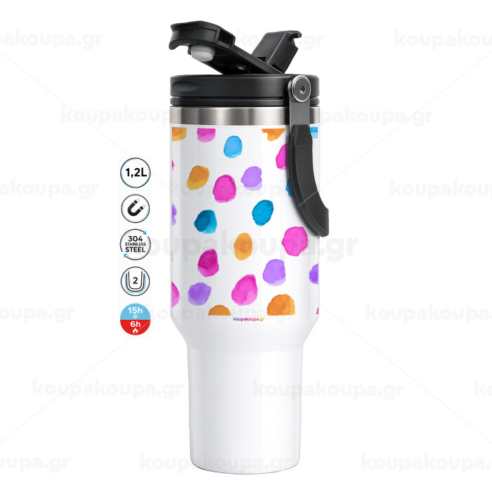 Watercolor dots, Mega Tumbler με καπάκι, διπλού τοιχώματος (θερμό) 1,2L