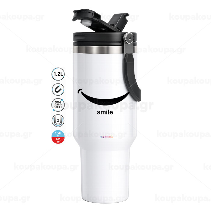 Smile!!!, Mega Tumbler με καπάκι, διπλού τοιχώματος (θερμό) 1,2L