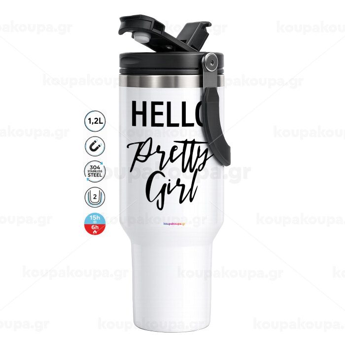 Hello pretty girl, Mega Tumbler με καπάκι, διπλού τοιχώματος (θερμό) 1,2L