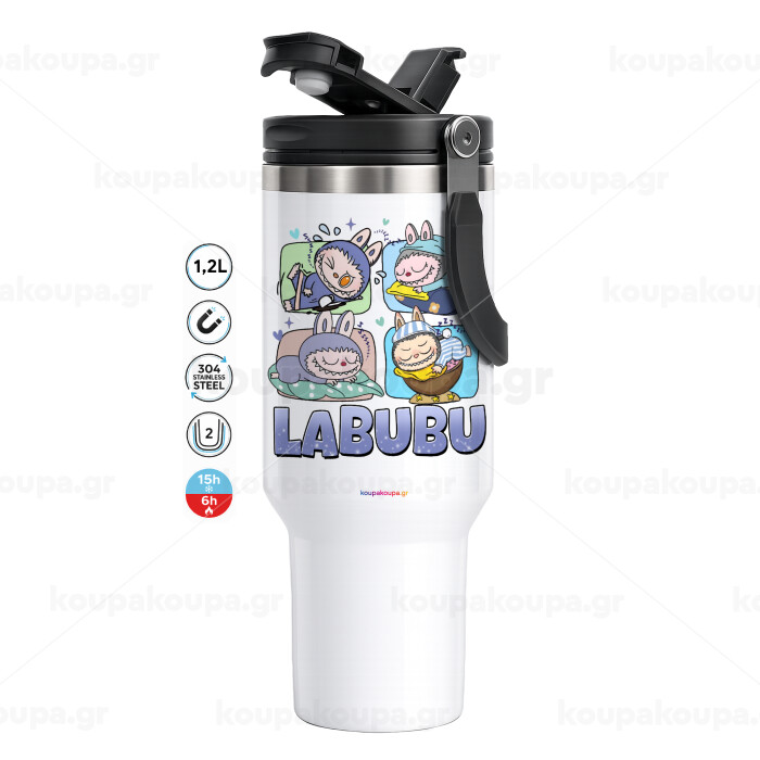 Labubu, Mega Tumbler με καπάκι, διπλού τοιχώματος (θερμό) 1,2L
